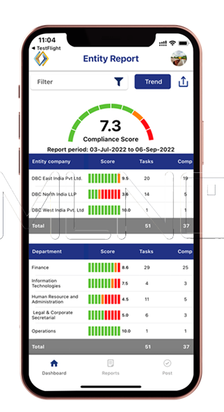 ComplyAny generates a unique compliance score for each entity and each functional department, in the case of a multinational company, compliance score for each region, sub-region, country etc.